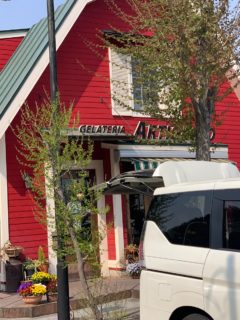 府中四谷橋を右へ踏み切りを渡ると直に川崎街道との交差点になります。その交差点を右折し高幡方向へ戻るように川崎街道を100mほど走ると赤い建物が見えてきます。今回のお目当ての一つジェラートショップのARTIGIANOです。