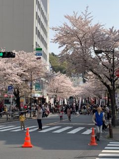 大学通りや富士見台通りの桜並木は見事でした。多くの花見の方で通りが賑わっていました。