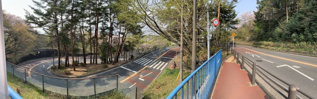 聖跡桜ヶ丘のイロハ坂も桜が綺麗でした。つづら折れの登りは本日最大の難所でリヤのギヤ32Tが大活躍でした。