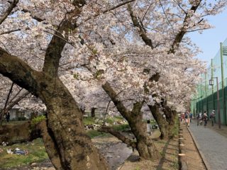 国立富士見台から立川方面へ。多摩川沿いの市営立川球場付近桜が多く植えられており中でも球場裏の小川沿いの桜は非常に綺麗です。