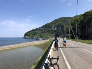 島の外周を走るこのライドは、前半ほとんどの景色がこの日本海側の青い海です。