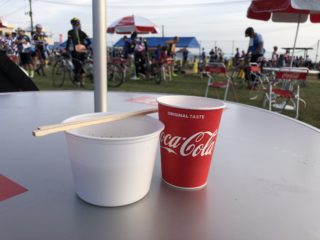 ゴールまでの時間を計算してここではギリギリまで体を休めます。この後に最後の試練である激坂と細かなアップダウンが控えています。そして何よりこれが最終エイドなのでゴールまで補給が無い!