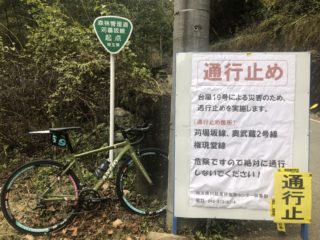 この日は通行止めになっていました。今年の台風19号の被害がまだ残っているようです。サイクリストの他にもこの道を生活に必要としている方は何人もいると思いますので、一日でも早い復興開通を願います。