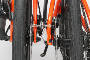 アッセンブルされるタイヤはサイドブラウンを特別に仕入れ、サドルとグリップもブラウンカラーで統一しました。またサドルは幅広のクッションタイプに、スプリング付きを採用することで長距離の乗り心地を快適にします。スポーツサドルが苦手な方でも選びやすくなりました。