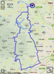 コースは津久井湖を基点に半原日向周辺の山道を越えて秦野へ行きヤビツ峠を越えて宮ヶ瀬湖に出て津久井湖に戻る1周82km獲得標高1700mのコースです。ヤビツ峠は丹沢山塊の東端の大山への登山口としても有名です。