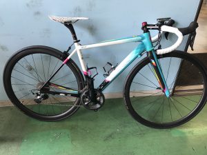 完成車重量はペダル込み重量6.9kg(実際はボトルをつけたりしているので7kg前半です。)タイヤは超軽量な物を使用していないので更にあと50g位の軽量化は挑戦できそうです。