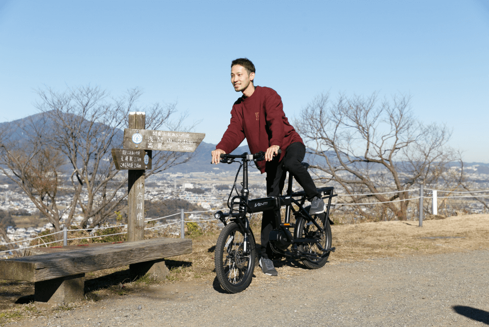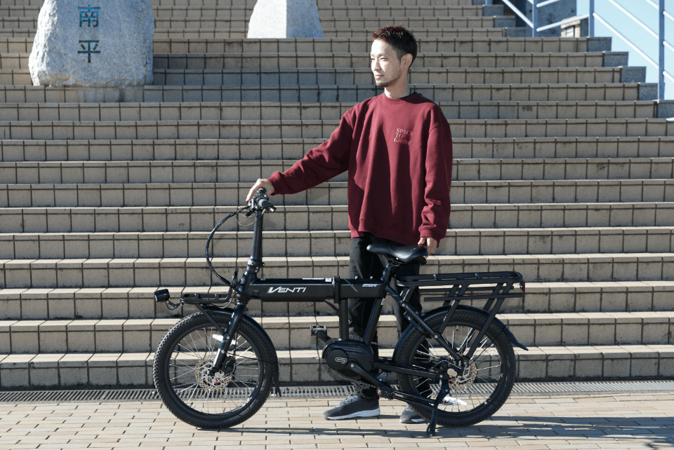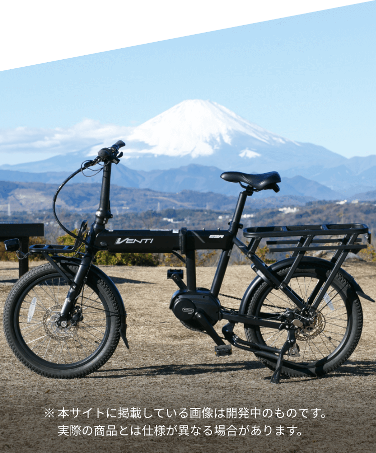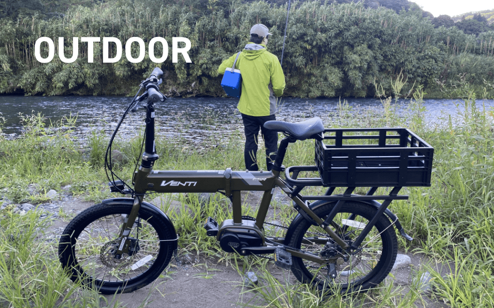 街乗りからアウトドアまでタフにこなすVENTIは、これまでの電動アシスト自転車が持つイメージフォルムとは一線を画します。